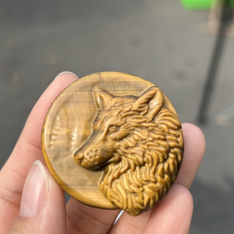 Type: Natural Tiger Eye Jasper Wolf Totem