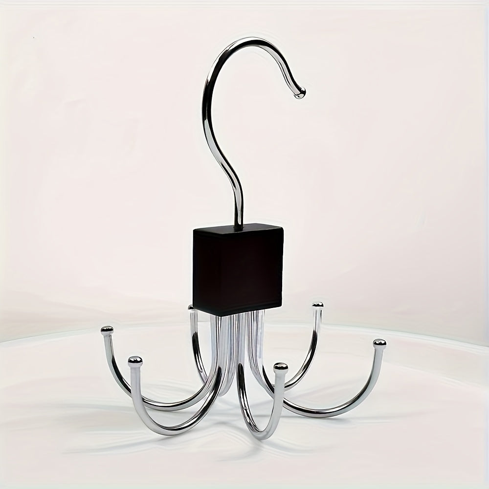 1pc Rotating Wooden Multi-Functional Large Capacity Belt Rack - Unfinished Steel Hooks for Belts, Bras, Tank Tops, Ties, Scarves - Fashionab