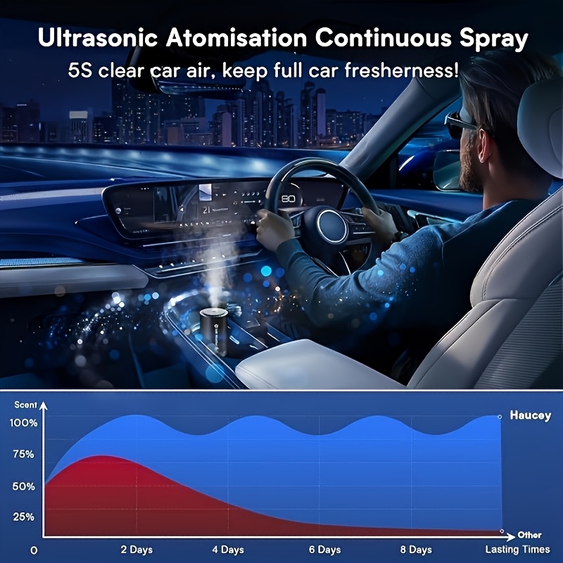 1pc Smart Car Air Freshener with Star Projector & Sonic Diffuser – USB Rechargeable, 4 Auto Modes, Night Light, Essential Oil Compatible, Cologne Scent, Compact Design, Ideal Gift for Car Enthusiasts, Air Freshener Car, JU