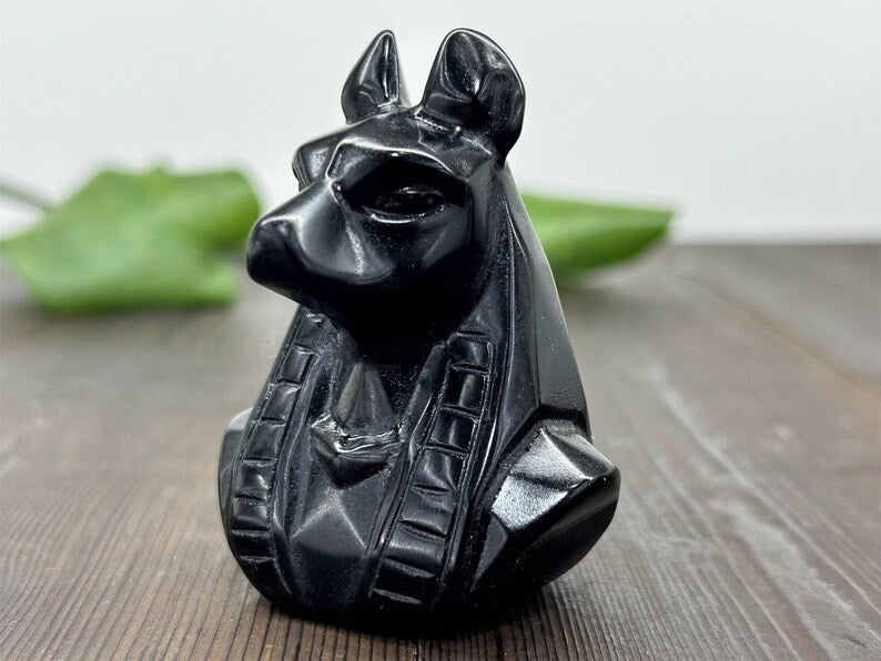 2.4" Natural Obsidain Carved Anubis,Crystal Carving,Obsidian Anubis,Reiki Healing,Home Decoration,Crystal Collect,Christmas Gifts 1PC