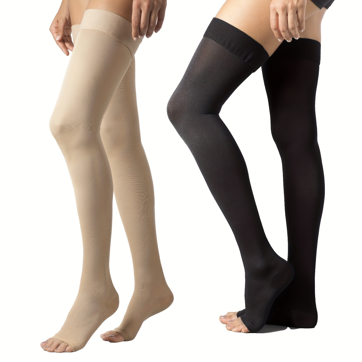 2 Pack, 15-20 MmHg Compression, Thigh High Medical Stockings for Women and Men, Dot-Top Open Toe Socks