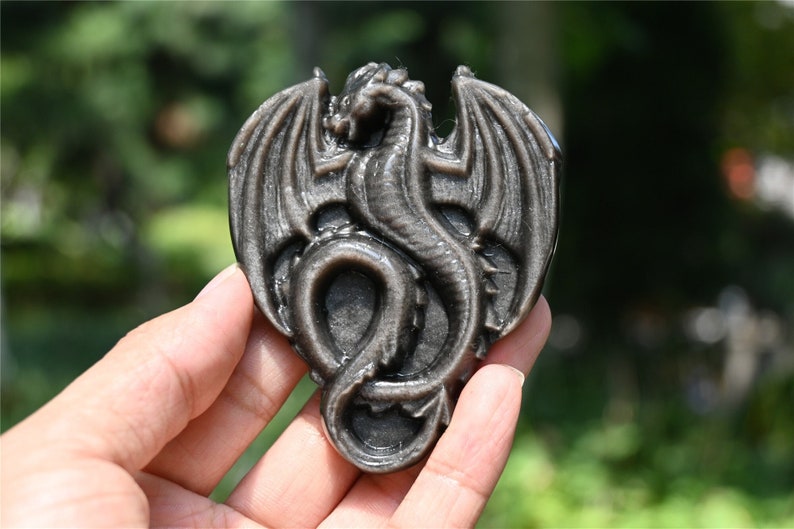 3'' Natural Hand carved Silver Obsidian Dragon,Crystal dragon,Quartz Crystal,Halloween gift,Crystal ornament,Crystal Healing