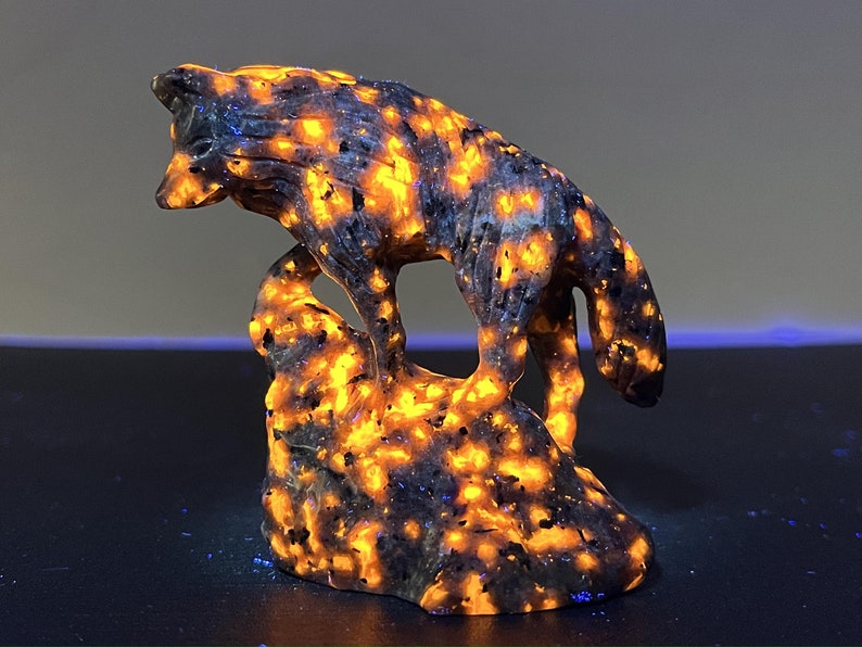 3" Natural Yooperlite Carved Wolf,Crystal Carved Wolf,wolf Carving,Wolf Statue,Reiki Healing,Home decoration,Christmas Gifts 1PC