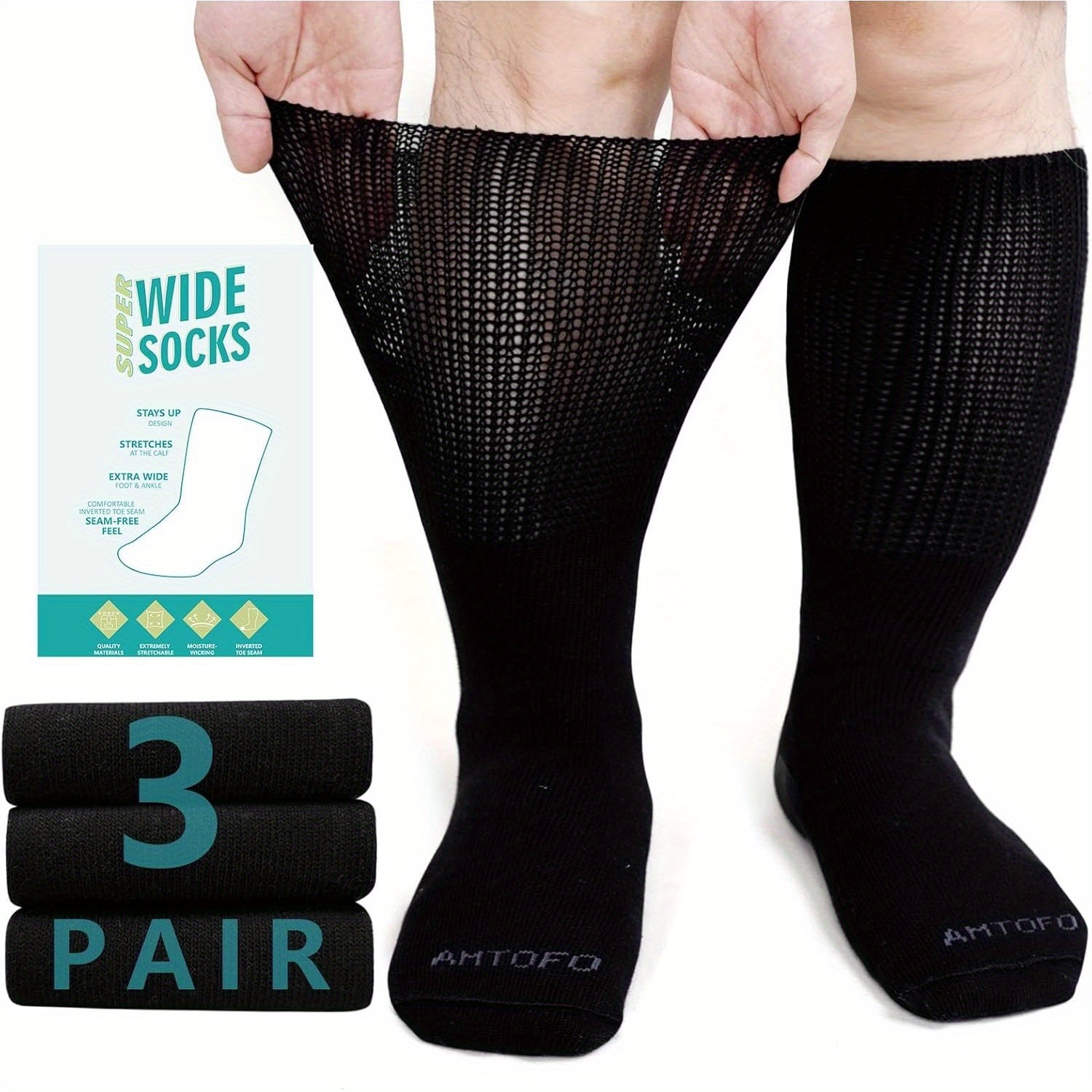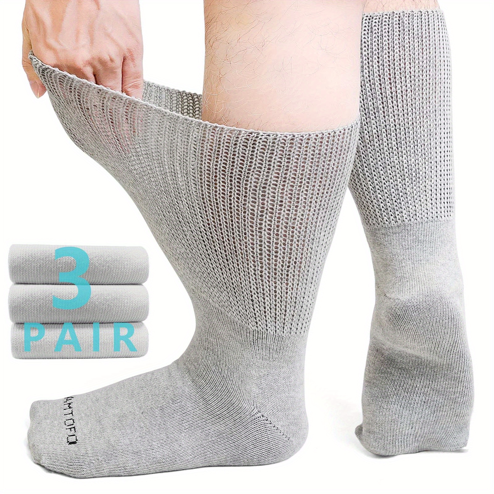 3 Pairs Extra Wide Loose Fit Socks for Men And Women, Stretchy Non-Binding Crew Socks, Fits Shoe Size 9-15