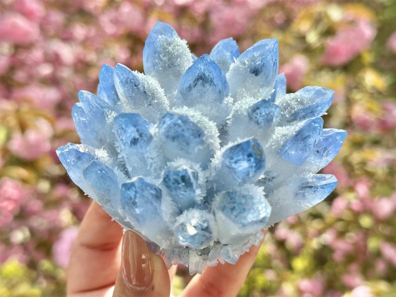 300g+ Blue Clear Quartz Cluster,Cluster Crystal,Quartz Point VUG,Mineral Specimen Healing Degaussing Decor Collection,Crystal decoration 1PC
