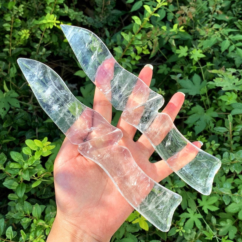 Material: Made from high-quality Clear Quartz, known for its transparency and mesmerizing beauty, this knife showcases the natural allure of the stone in every detail.