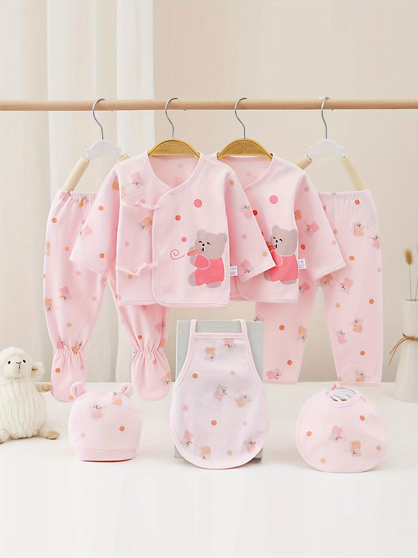 All-Year Comfy & Cute Baby Girl's 7-Piece Cotton Set: Lovely Bear & Rabbit Cartoons, Easy Care, Versatile Wear