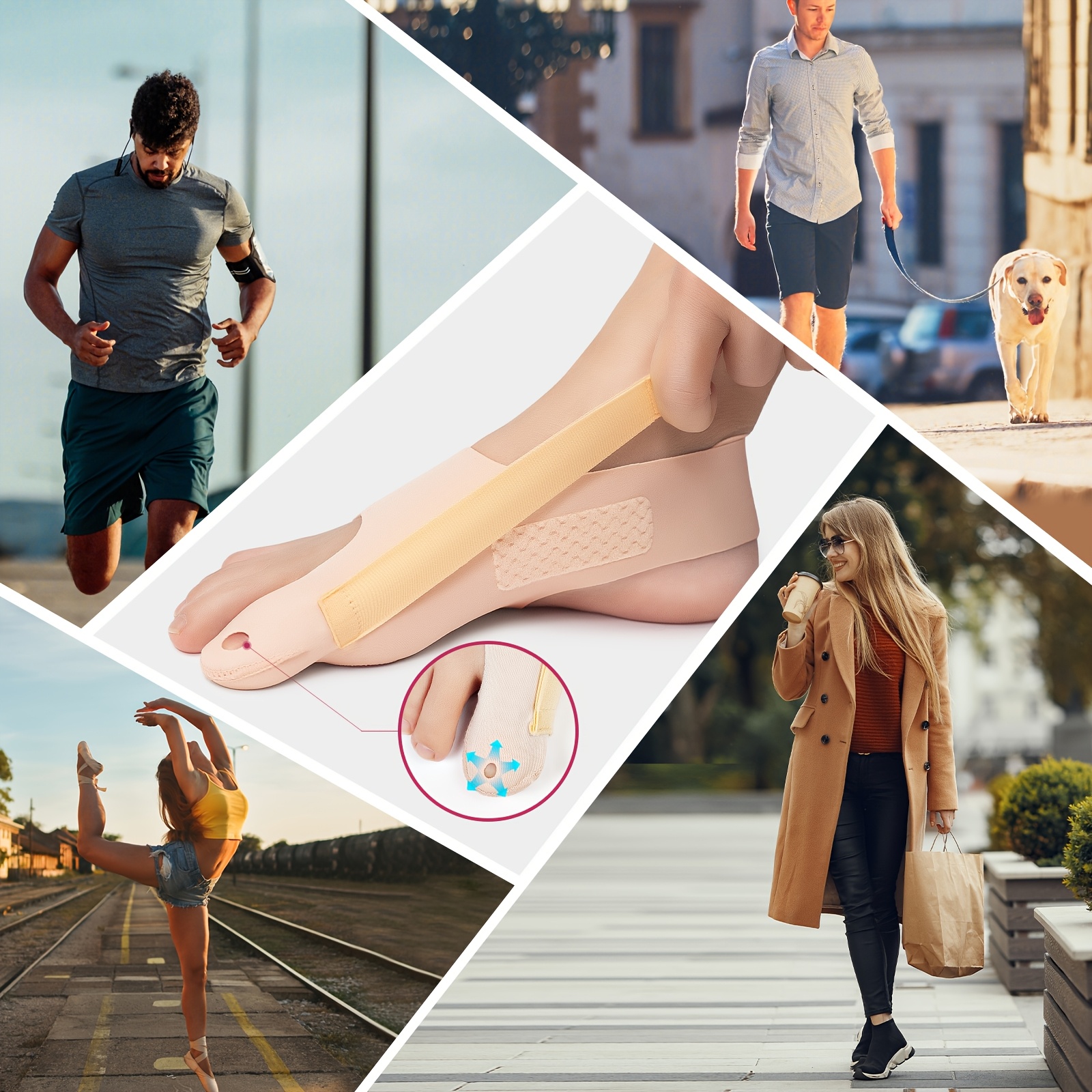 Breathable Fabric Toe Separator & Support Wrap for Day and Night Use – Ideal for Running,, and Foot – Easy to Wear, Durable, Beige with Blue Accents, Foot Comfort Support | Supportive Footwear | Breathable Fabric Wrap, Foot Care