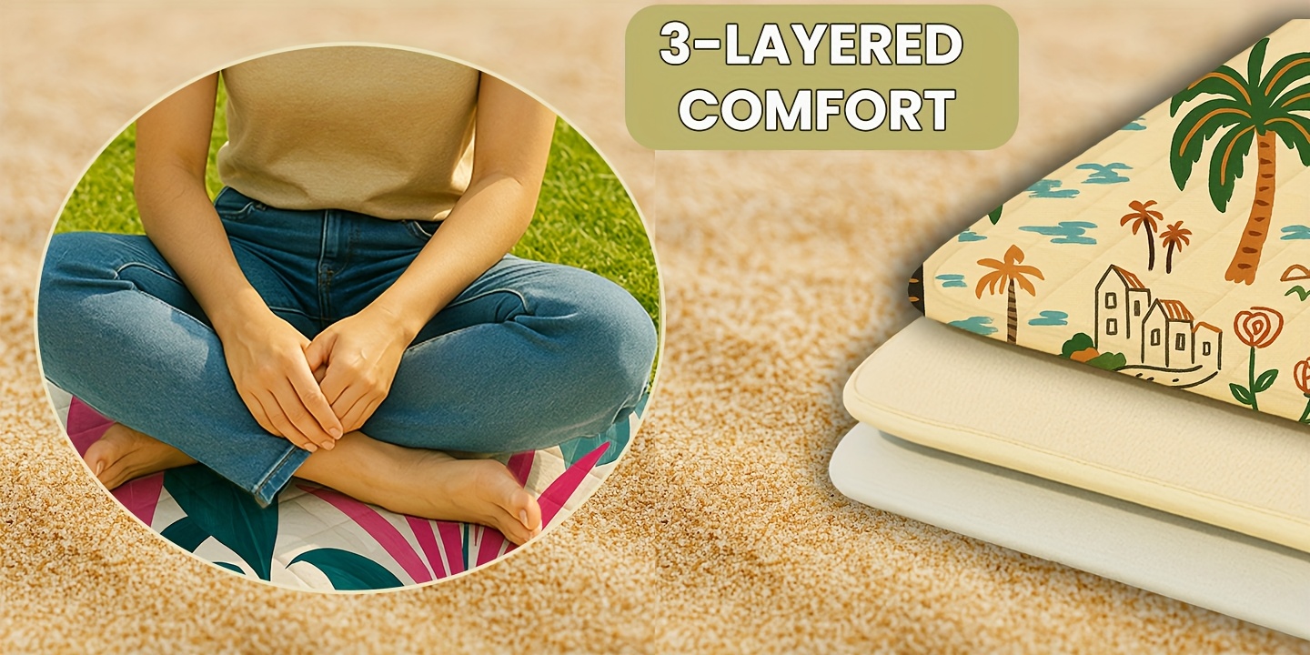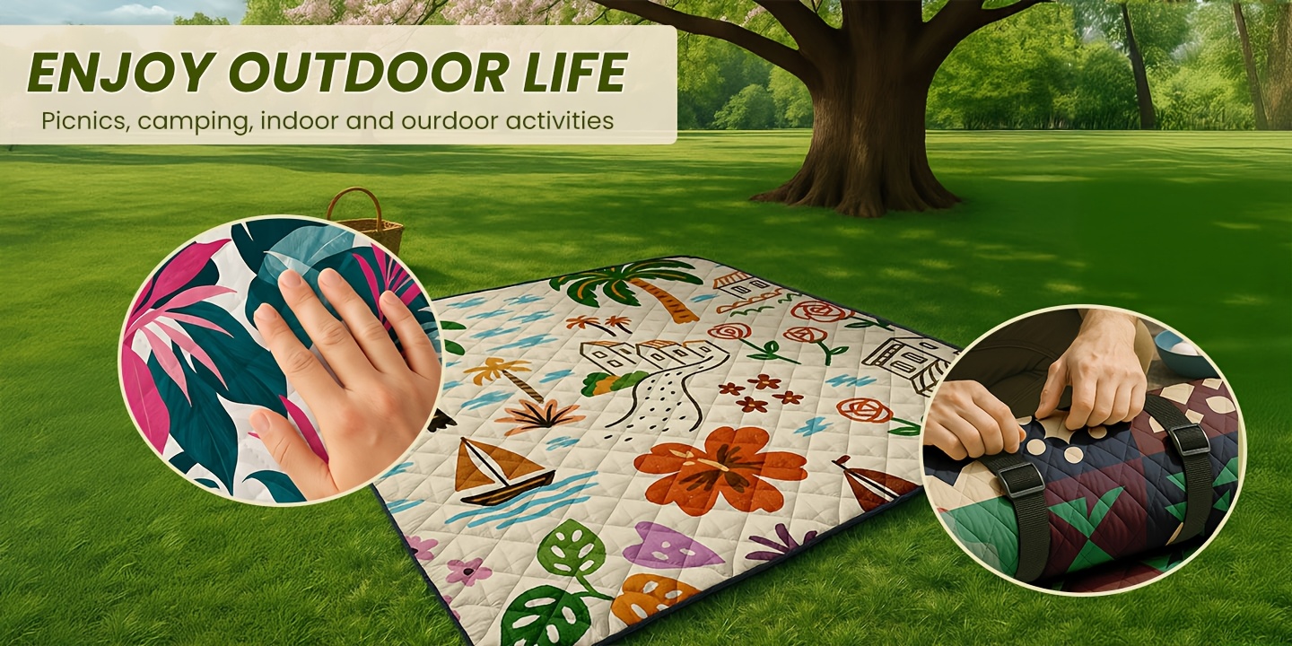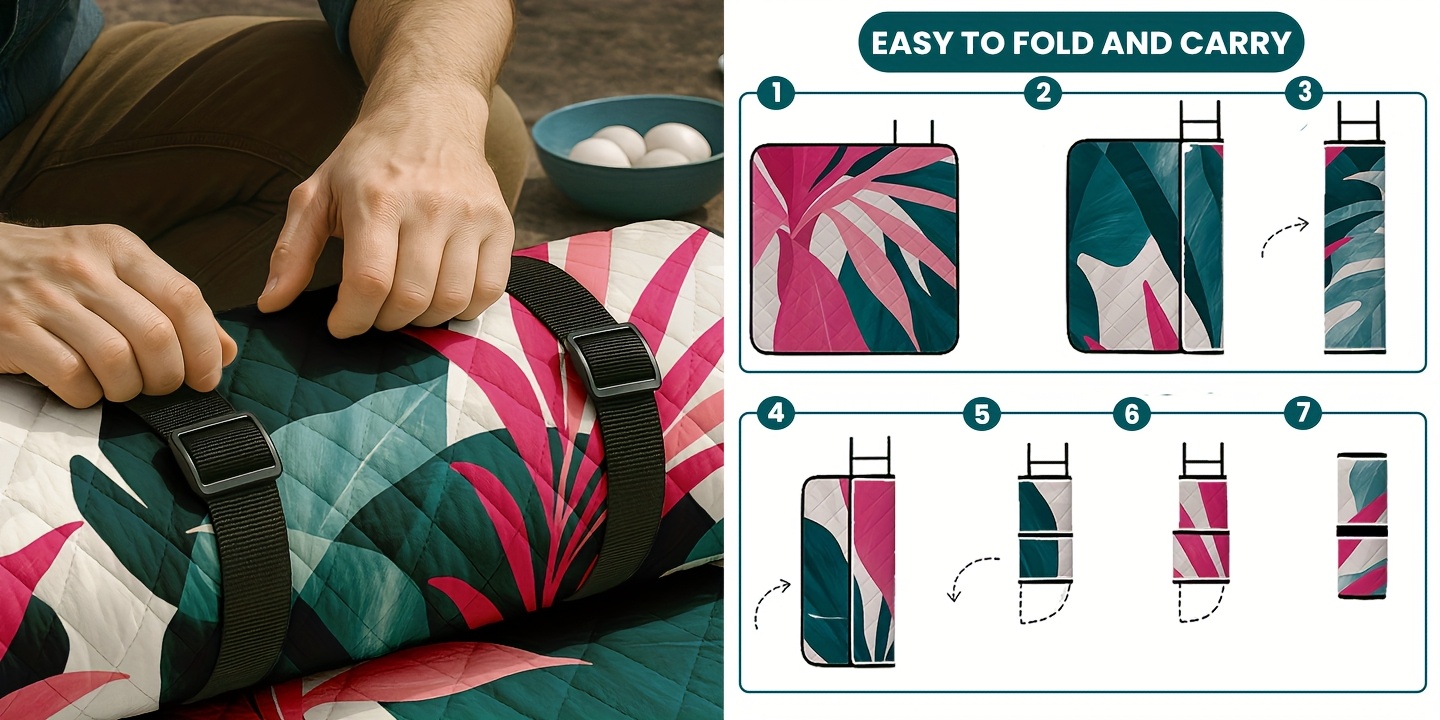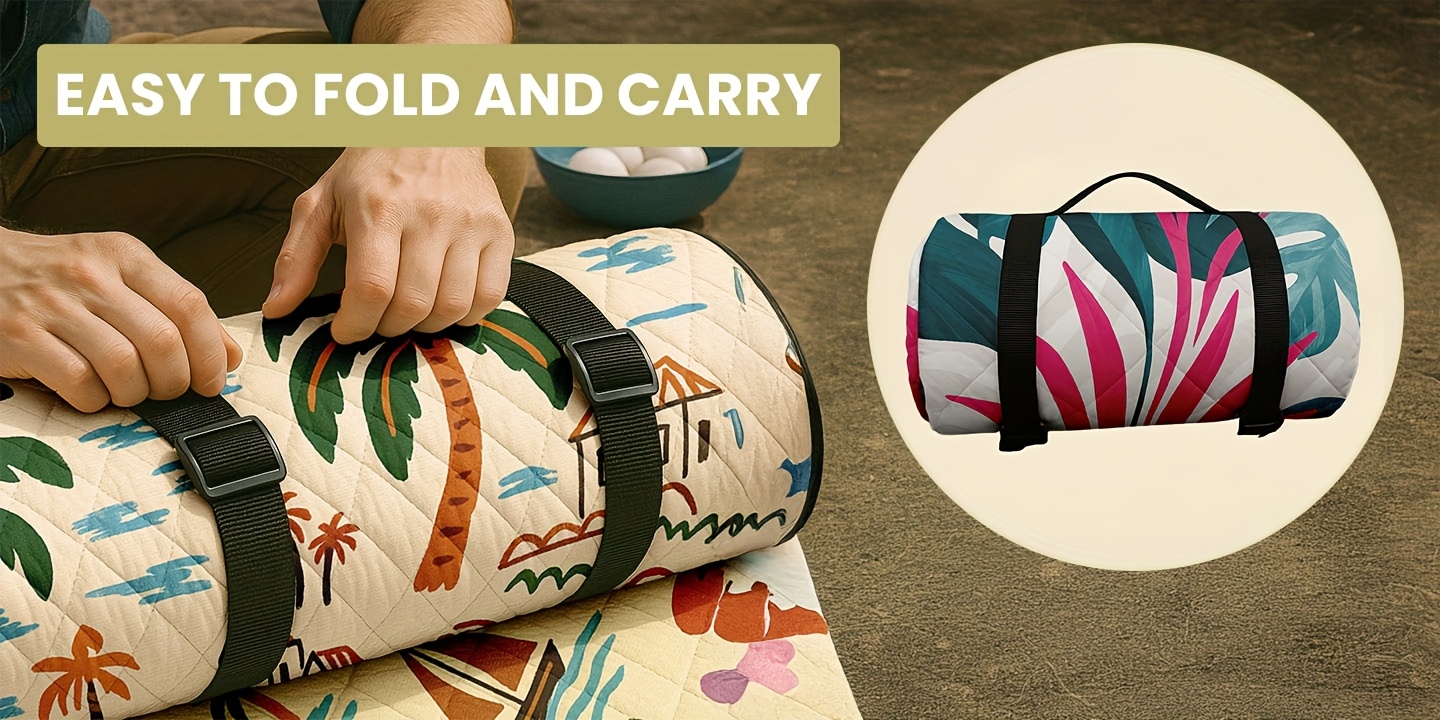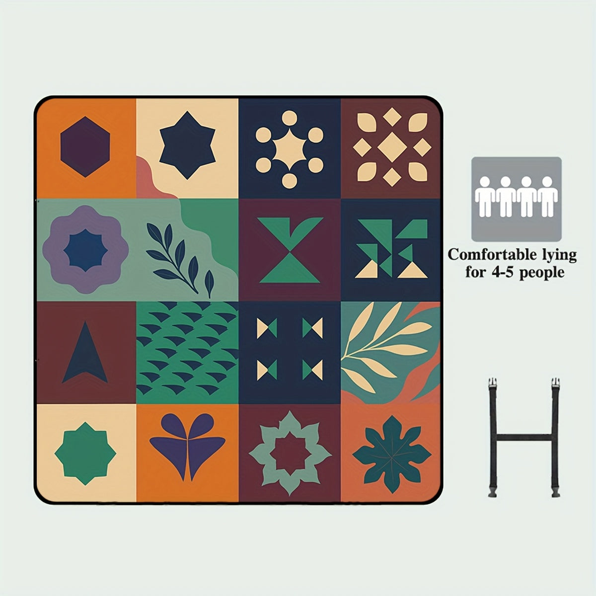 Extra Large Foldable Picnic Blanket with Carry Strap - Soft Padded Three-Layer Design, Colorful Floral & Fruit Print, 198.12x198.12 cm for Beach, Park, Camping & Travel, Beach Blanket, Camping Essentials, Vibrant Pattern, Durable Fabric