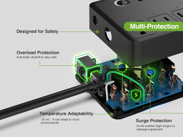 Safety - The intelligent power strip includes a surge protector, which is beneficial for safeguarding electronic devices and appliances from unexpected spikes in energy that could lead to permanent damage.