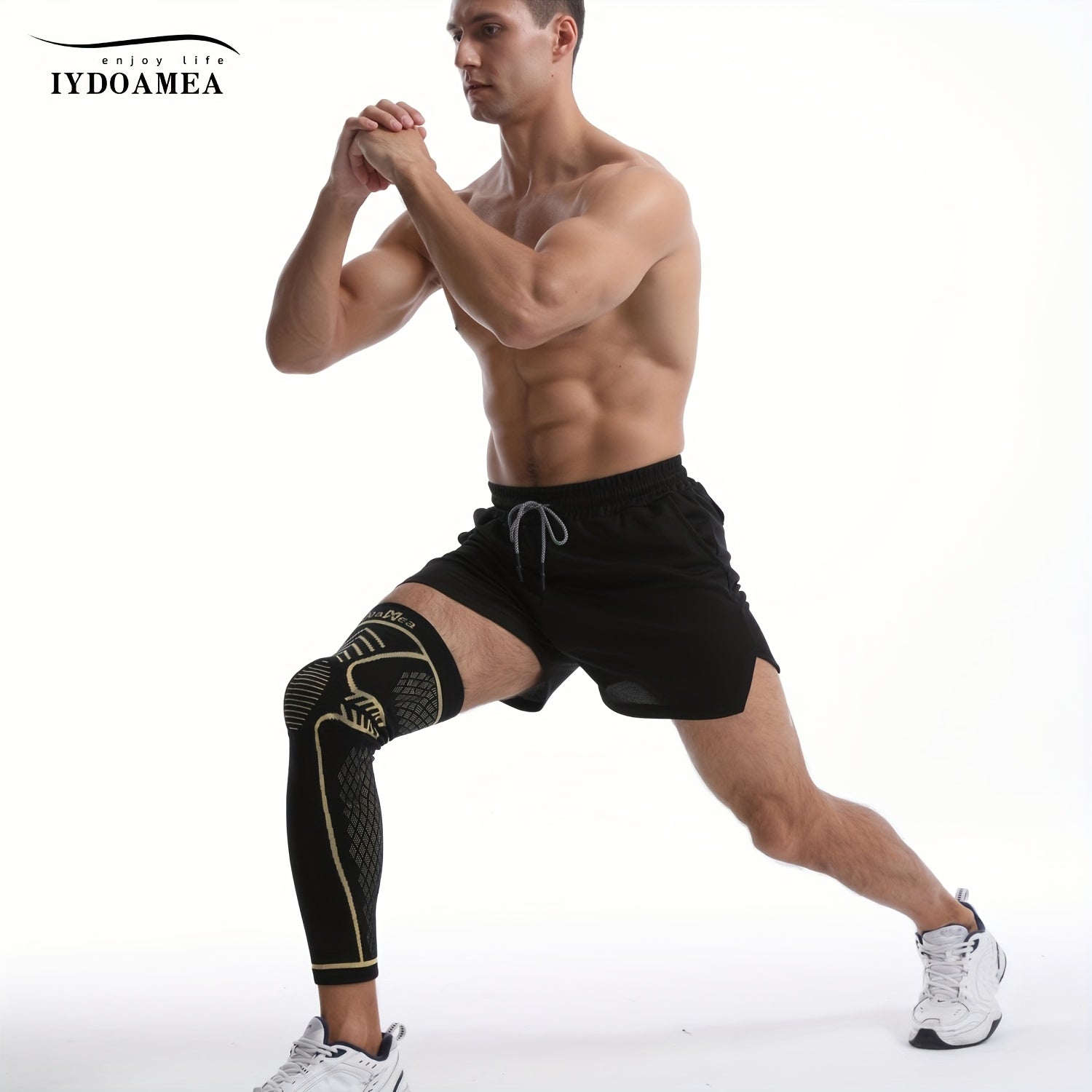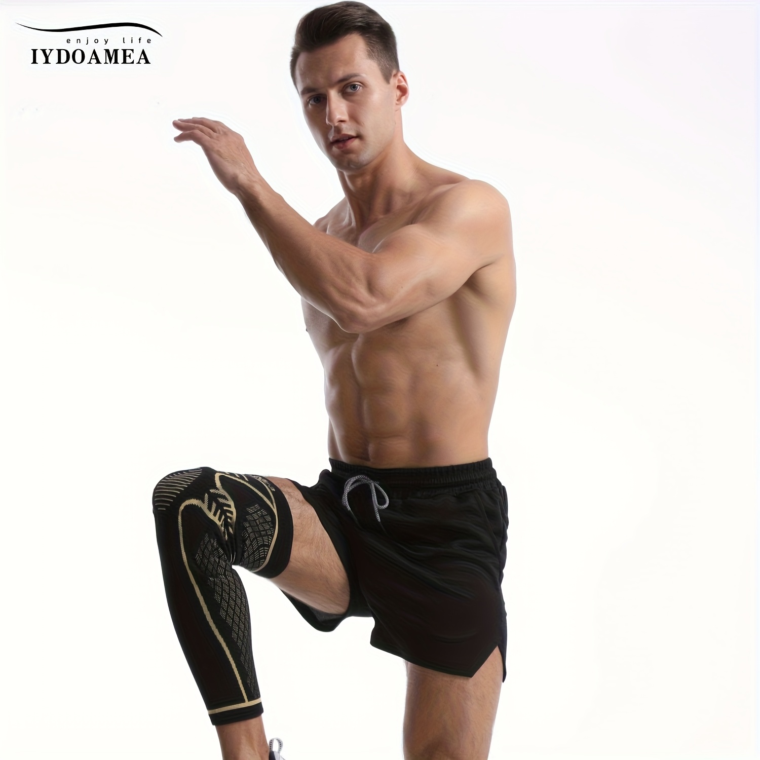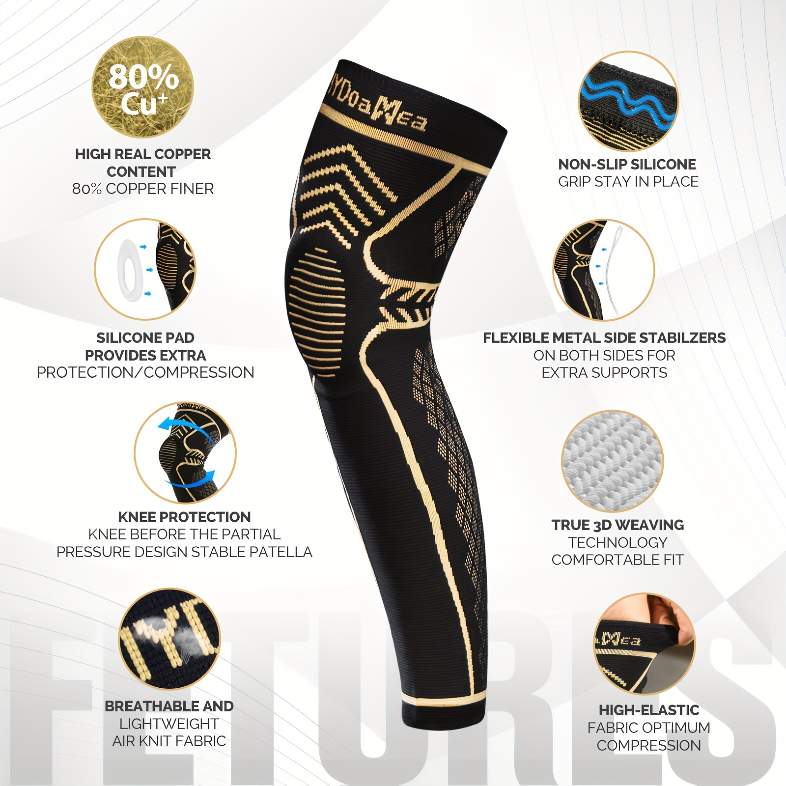 IYDoaMea 1pc Copper Full Leg Knee Braces for Women & Men, Knee Compression Sleeves with Patella Gel Pad & Side Stabilizers, Knee Support for Sport, Running, Workout
