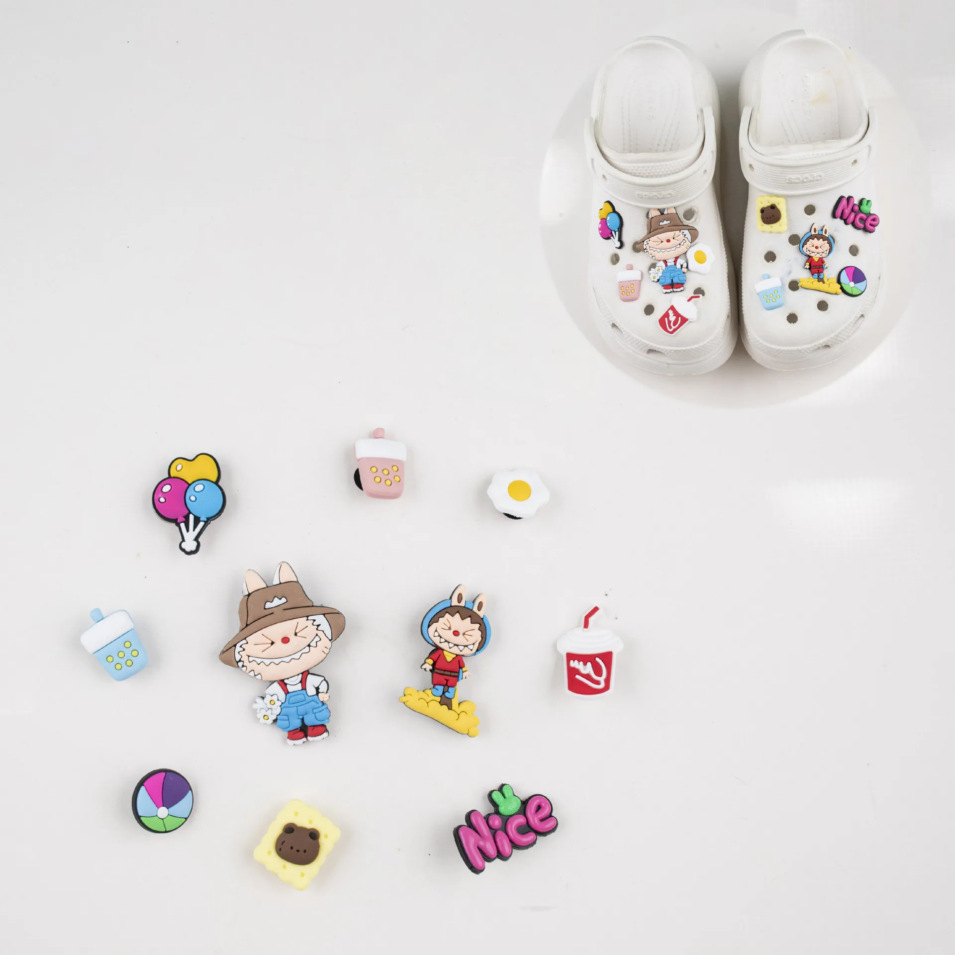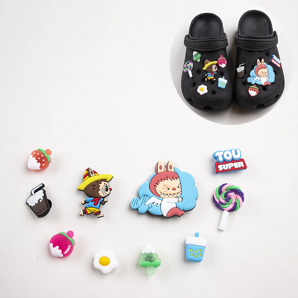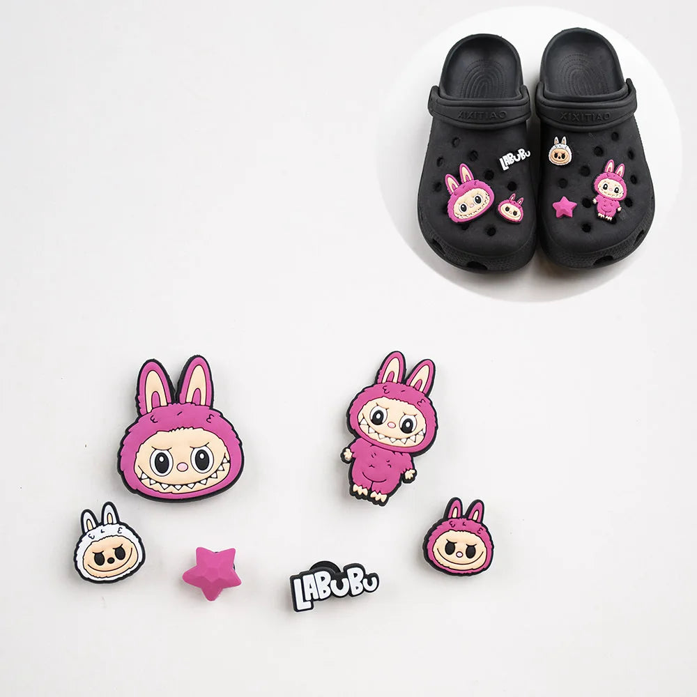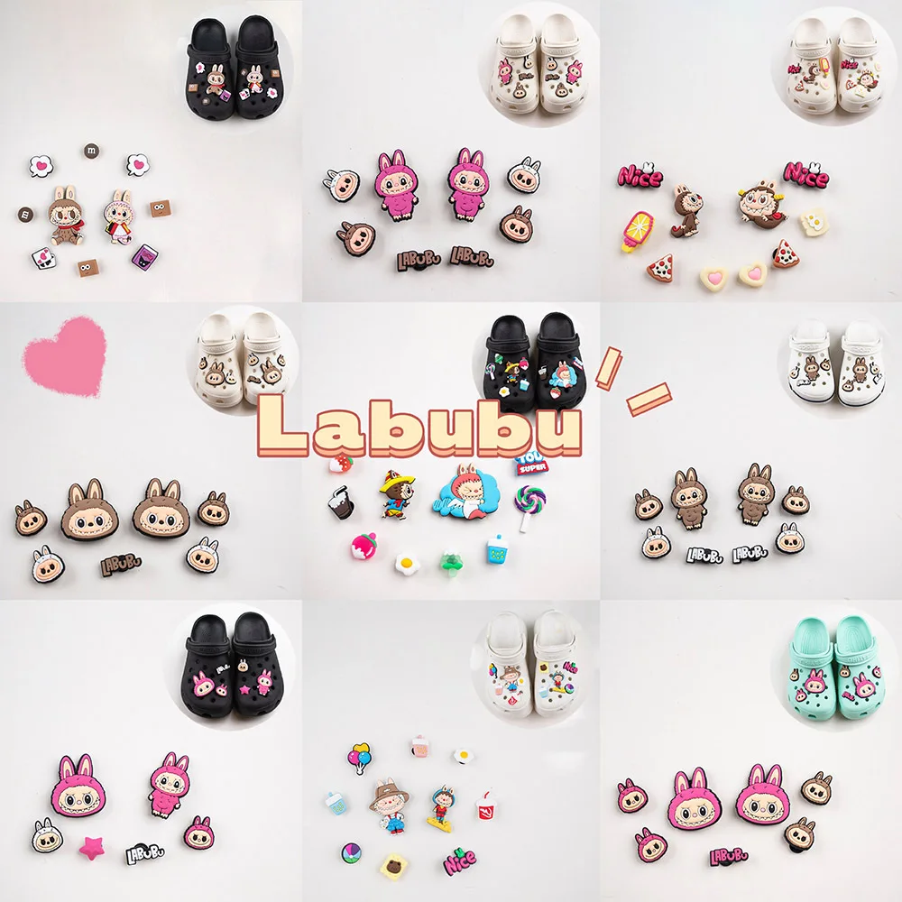 Labubu Croc Charms Slippers Decorative Accessories Shoes Flower Sandals Ornaments Cartoon Shoes Decor Casual Shoes Buckle Gifts