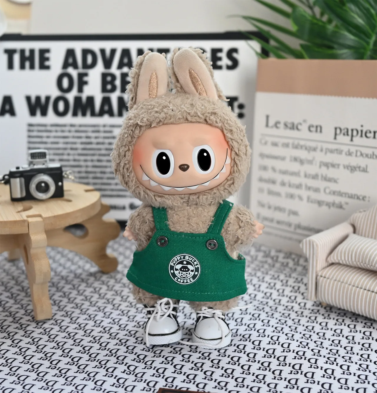 Labubu Doll Clothes Baby Clothes Green Coffee Dress ShoesFashion Overalls Bib Hat Set Kawaii V1 V2V3 Doll Clothing Accessories