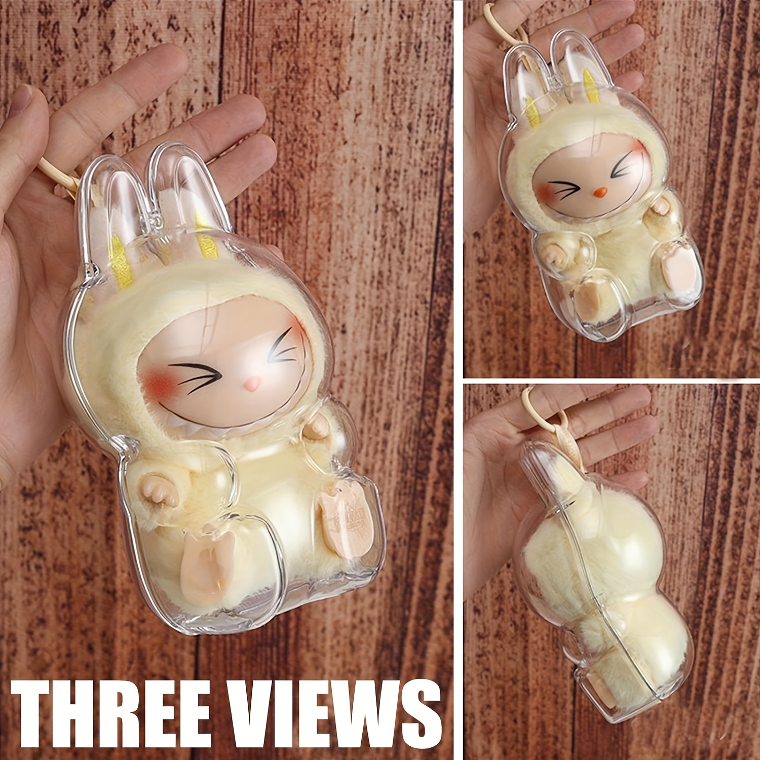 LABUBU Plush Doll Transparent Bag Keychain, Hanging Display Cabinet, Protective Cover, Plastic PVC Storage Box, Suitable for Second-Generation Sitting Parties