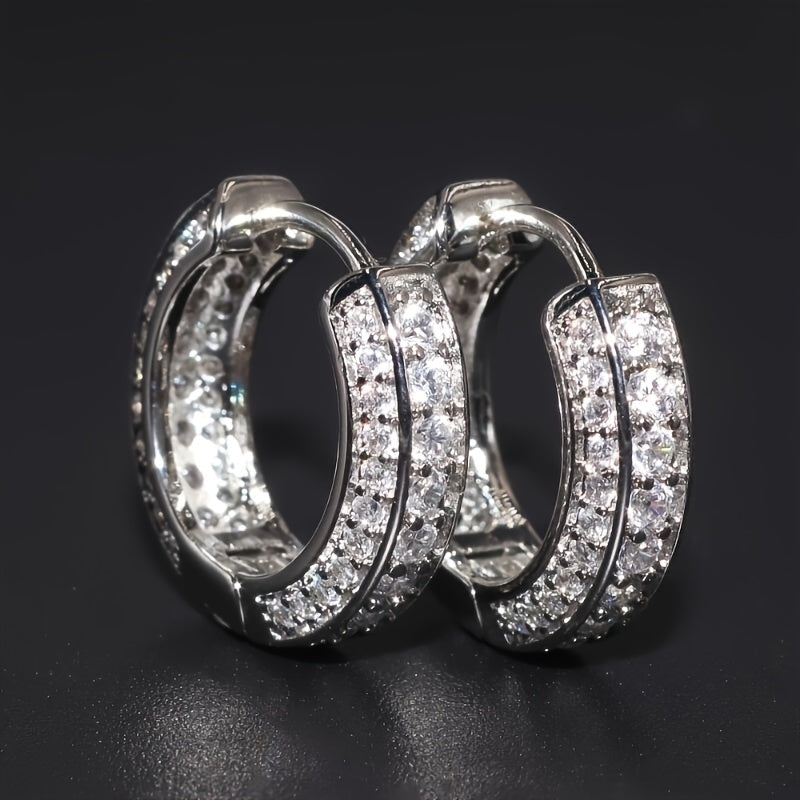 Luxurious And Fashionable Men's Jewelry - 2pcs Crystal Circular Huggie Earrings With Cubic Zirconia, Hypoallergenic Cartilage Cuffs