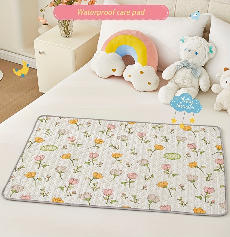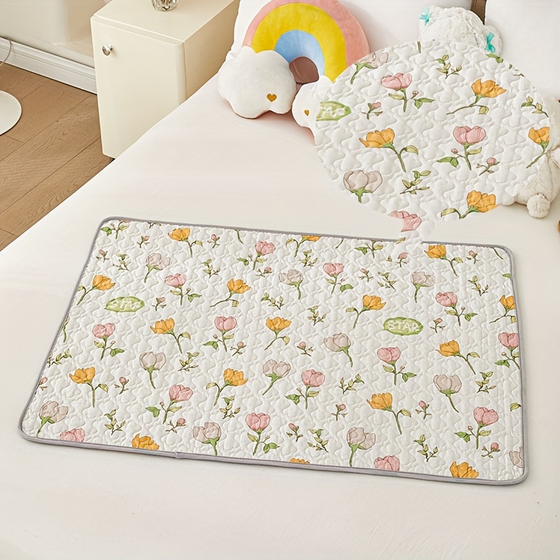 1pc Thick Care Pad - Dual-Sided Leak Bed Protector with Floral Design, Reusable Incontinence & Period Pad for Bed, Couch, Nursery - Absorbs Spills, Urine, Menstrual Flow, Bed Protection Pad | Decorative Bed Mat | Durable Material, Mattress Protector