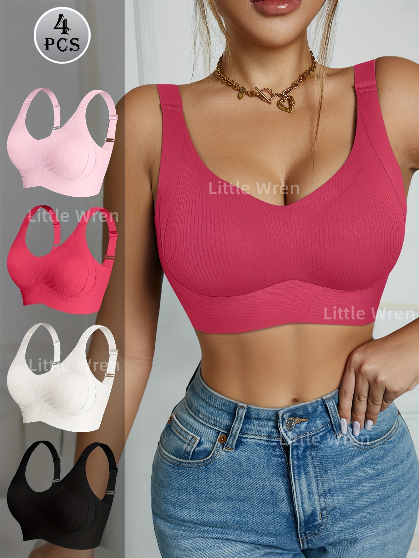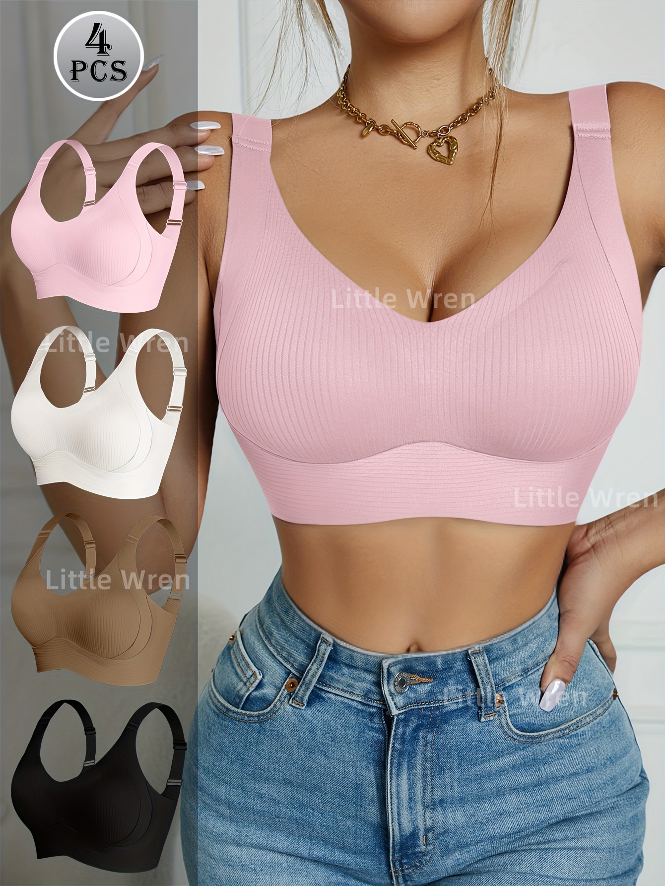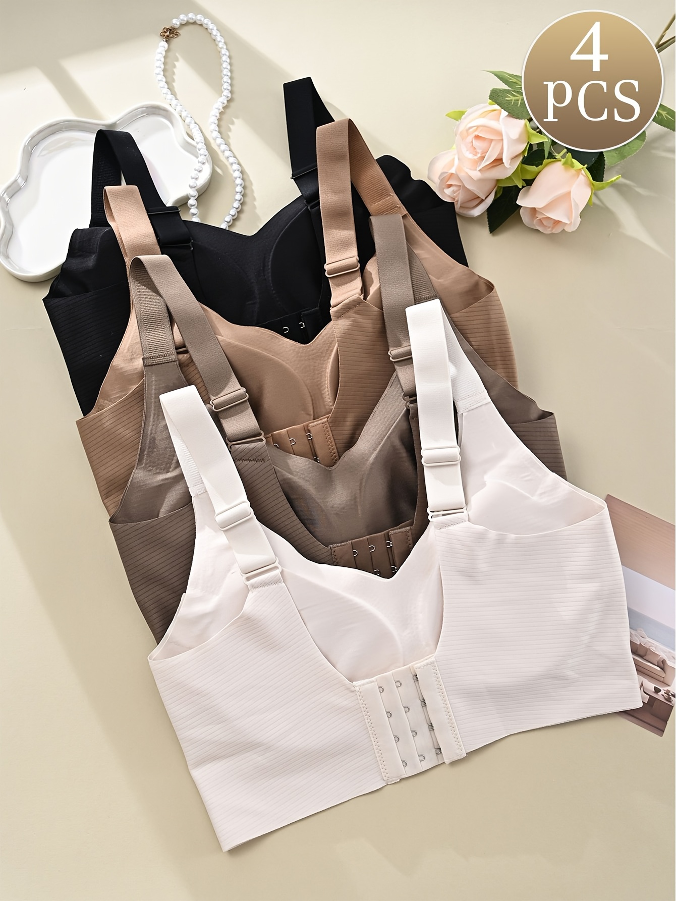 4pcs Seamless Bralettes for Women - Elegant Nylon & Elastane Blend, Comfortable Wide Straps, Soft Support, No Underwire - Available in Beige, White, Black, Casual Lingerie|Wide Strap Bra|Wirefree Comfort