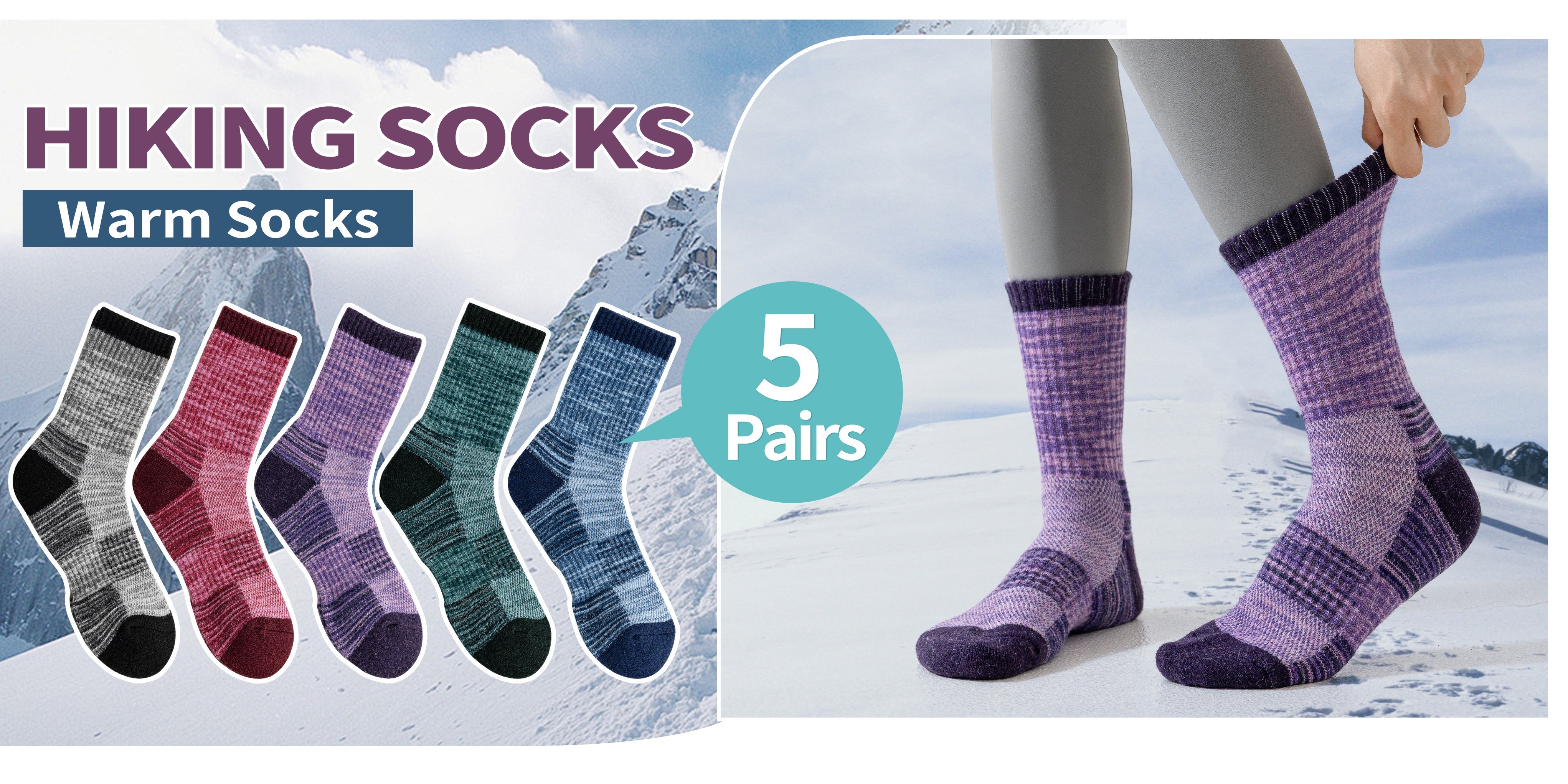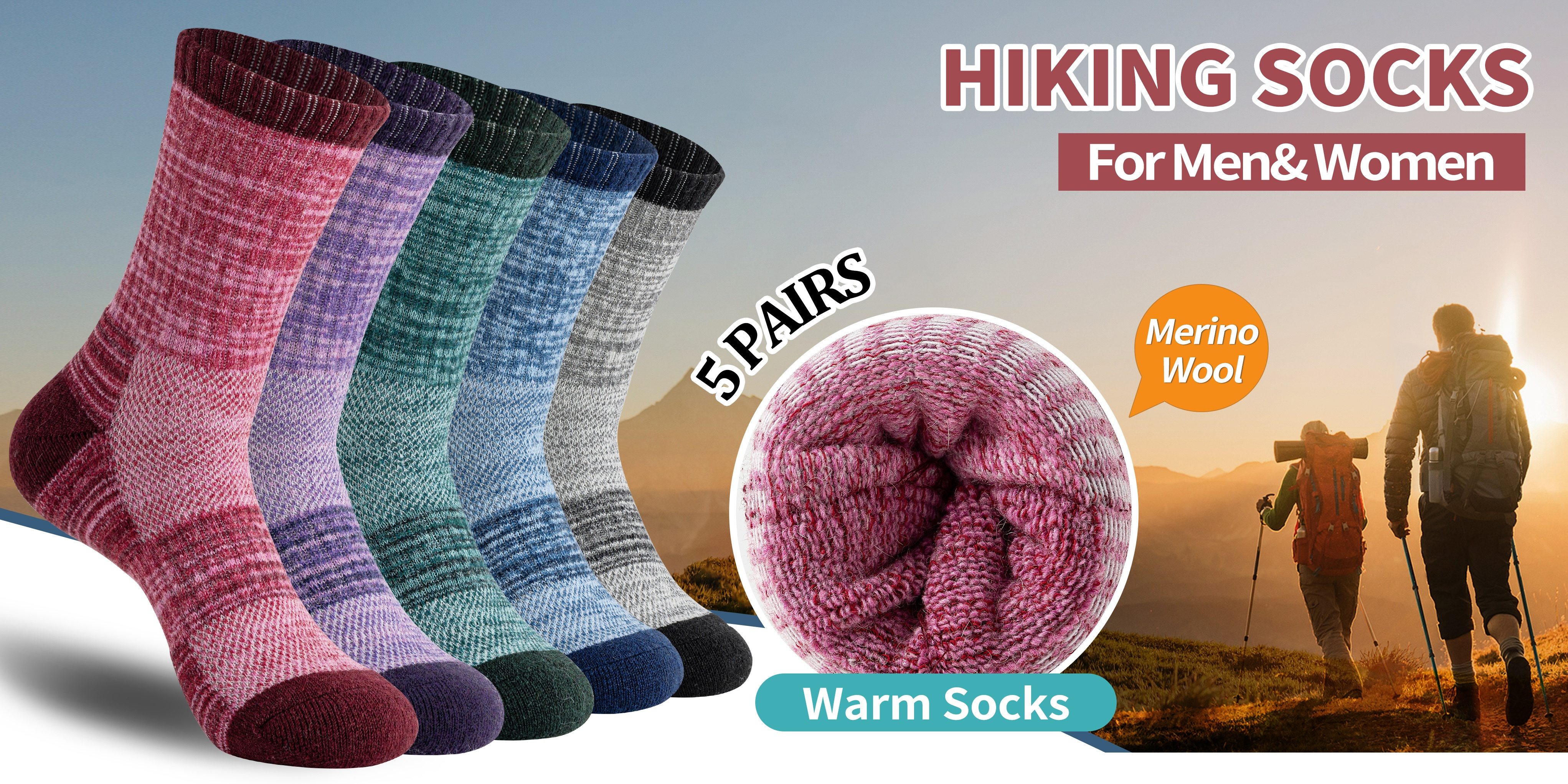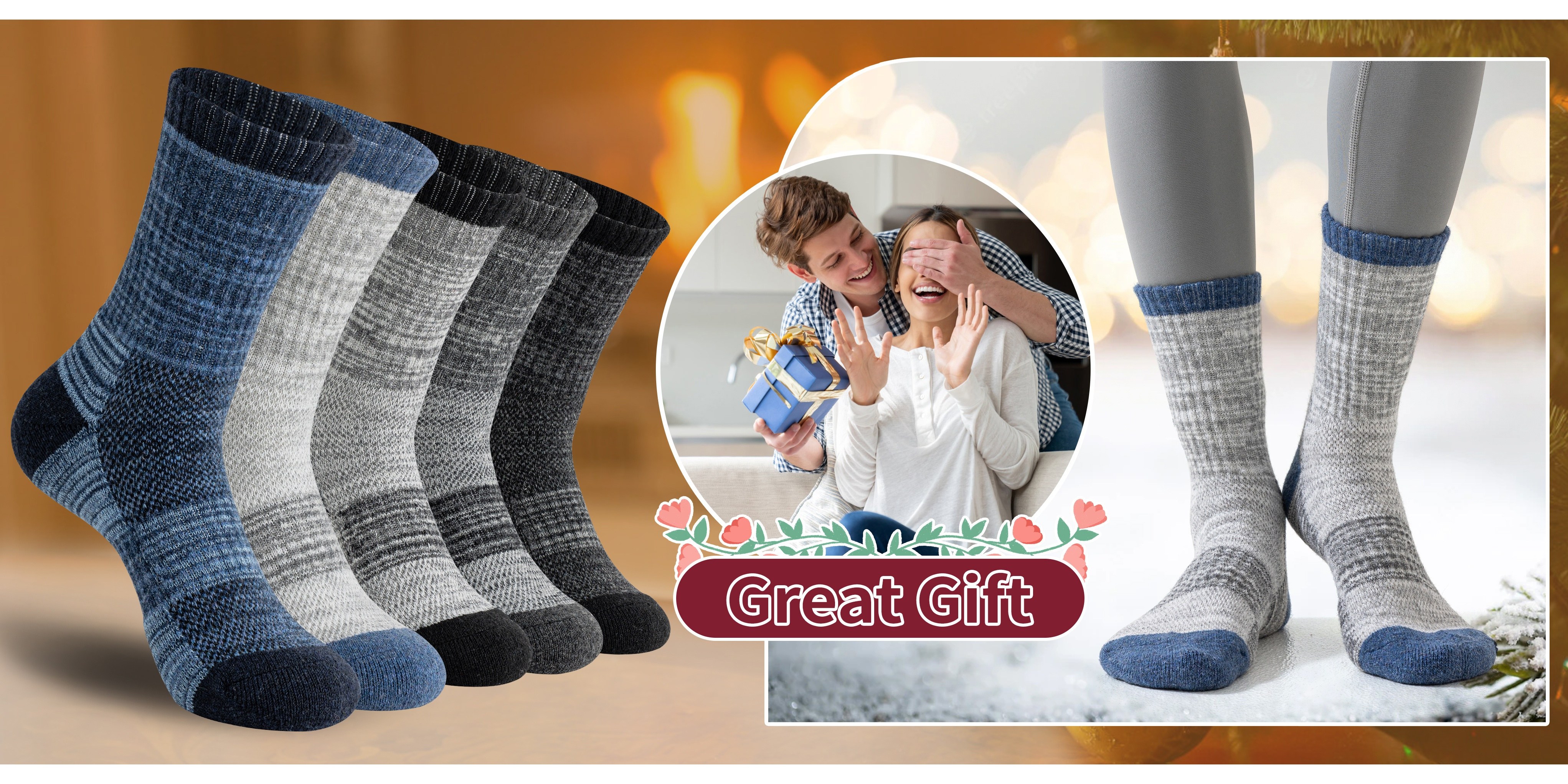 5 Pairs Merino Wool Hiking Socks For Women & Man Compression Support Sweat Absorbing Breathable Thick Cushion For Festival Gift Sock
